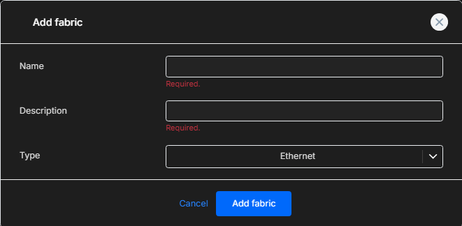 To set up a Fabric, click on Fabrics in the Admin UI and click on Add Fabric