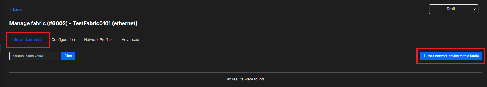 To add a network device click on Add network device to this fabric in the first tab Network devices