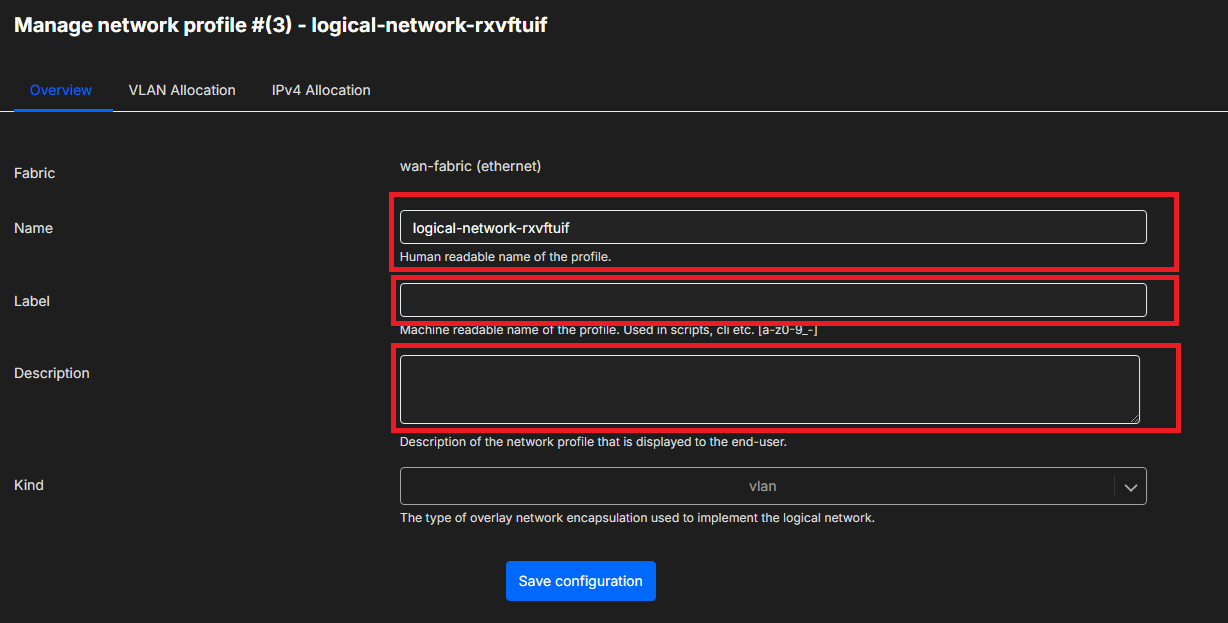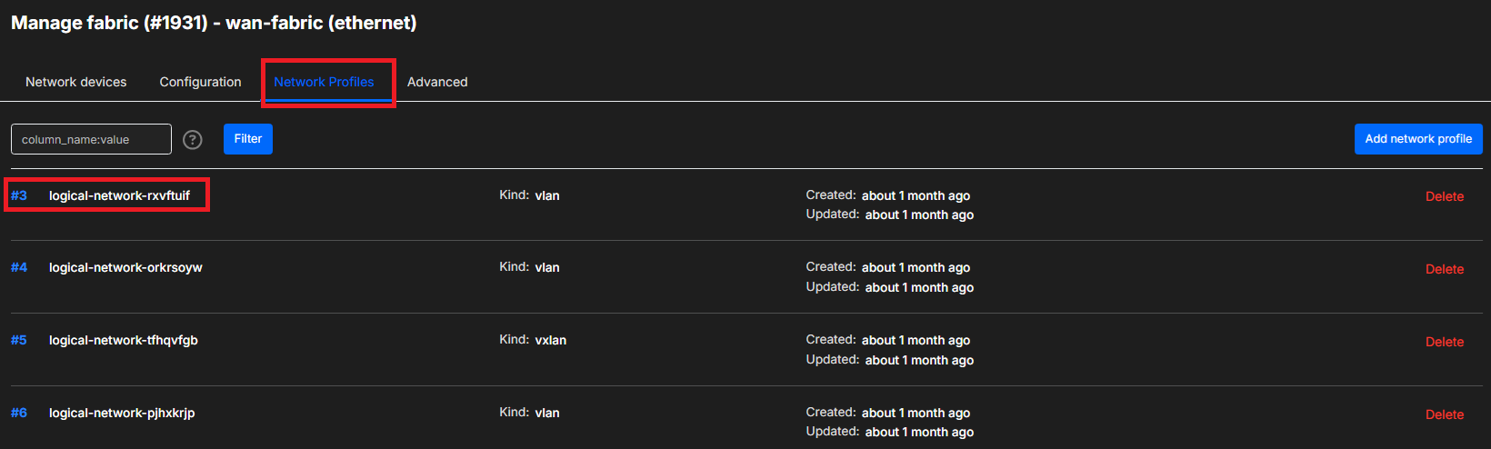 Section titled “Editing a VLAN Network profile”To edit a VLAN Network profile, navigate to network profiles and click on the network profile