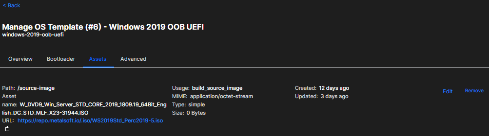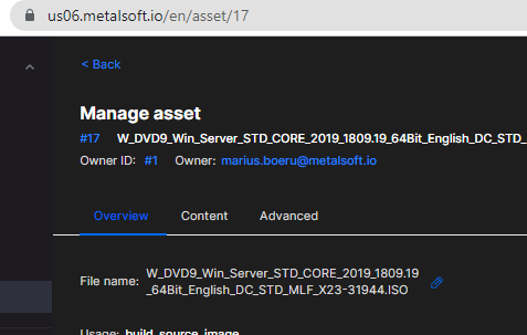 Click on edit next to the iso asset and click on the pen icon to change the display name of the ISO and save: