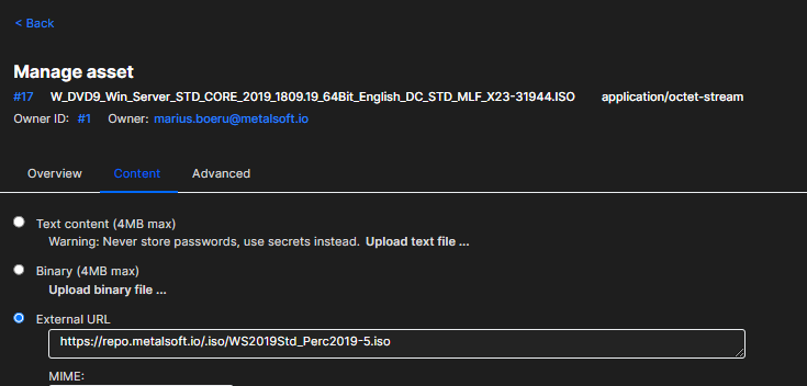 Then click on Content and change the External URL to the file name: of the new ISO: