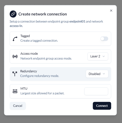 Add either a Pre-created Network or Private Network and drag the connection from the Endpoint to the network and fill in the network connection information and click Connect