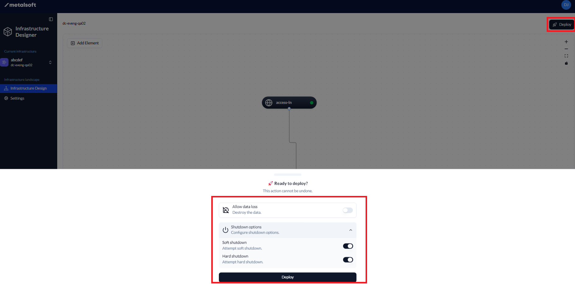 This will create the connection from the endpoint to the network. Click on Deploy, then select the options from the pop up box at the bottom and click Deploy once complete