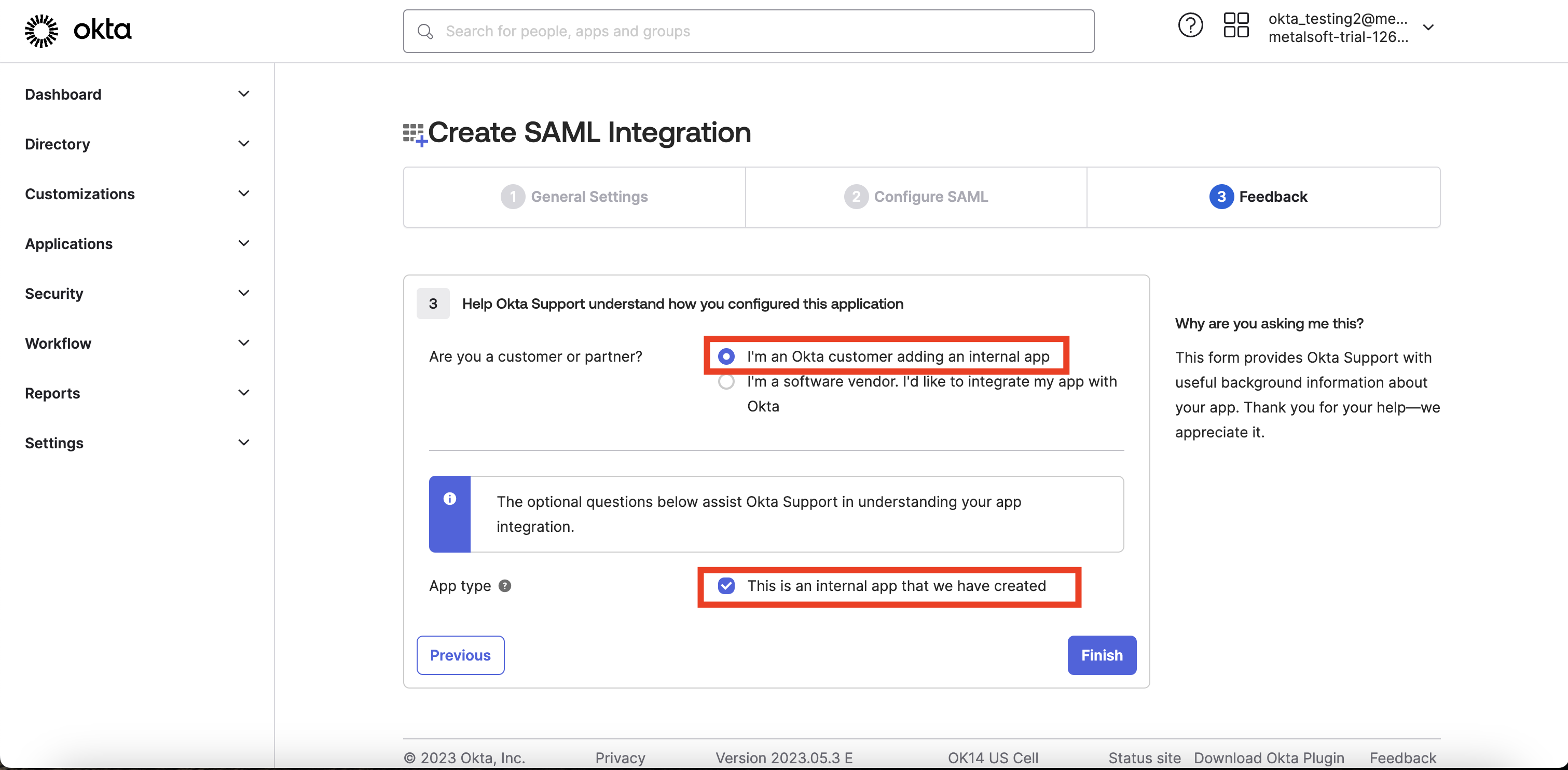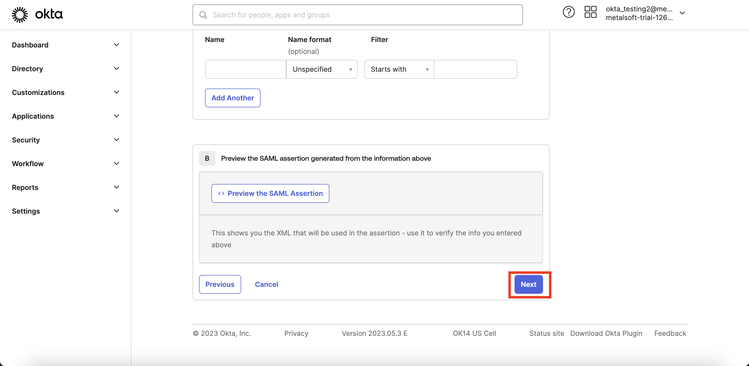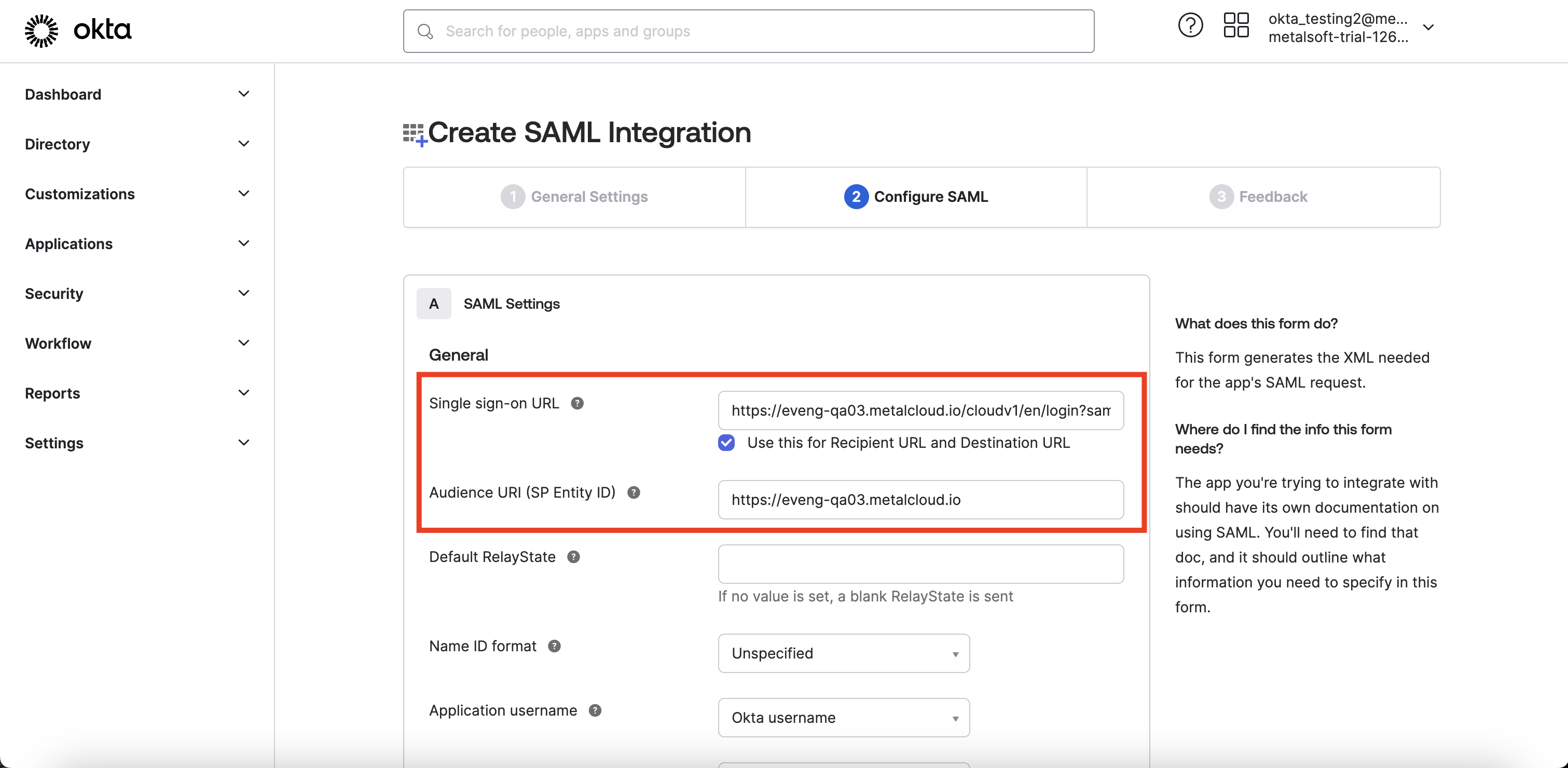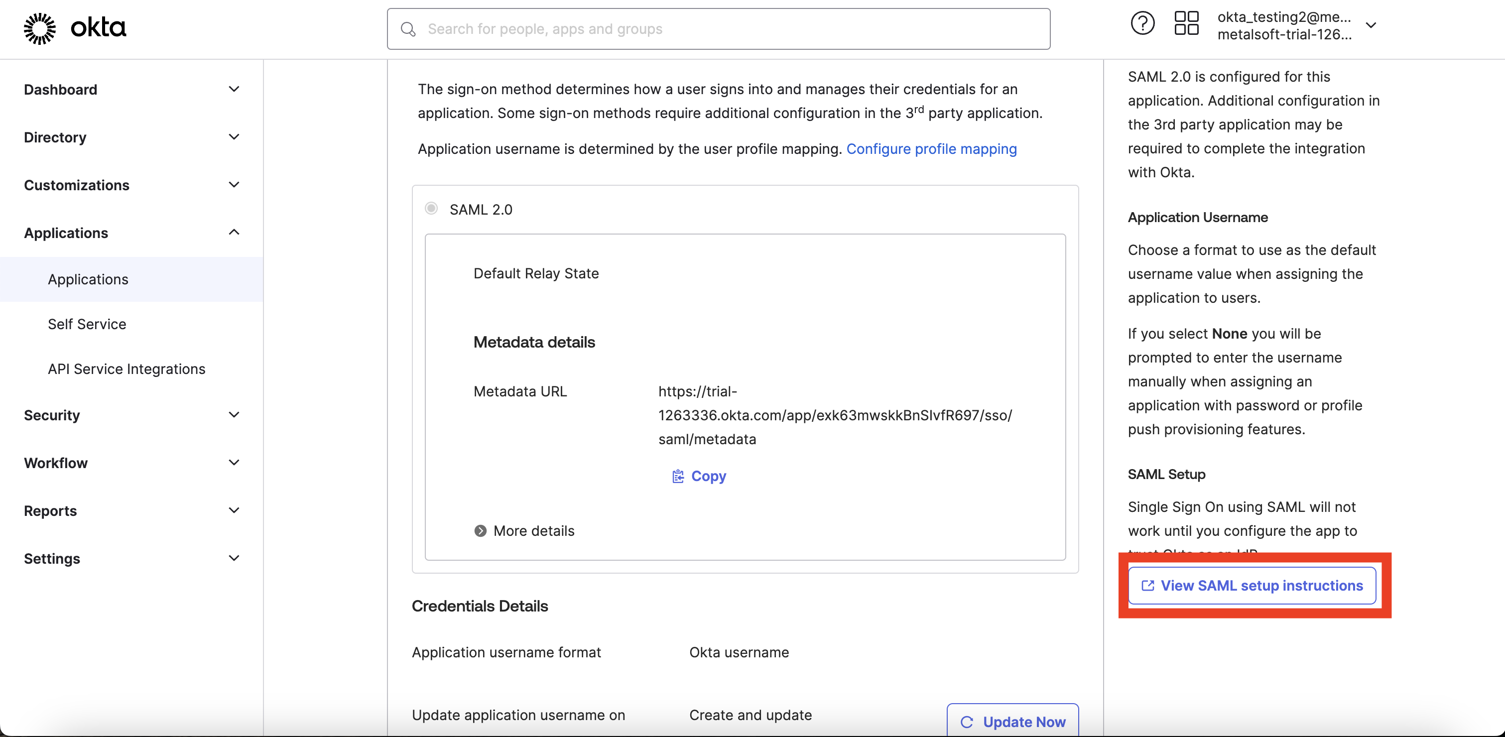 Step 2. Configuring MetalSoft App for using Okta configuration.