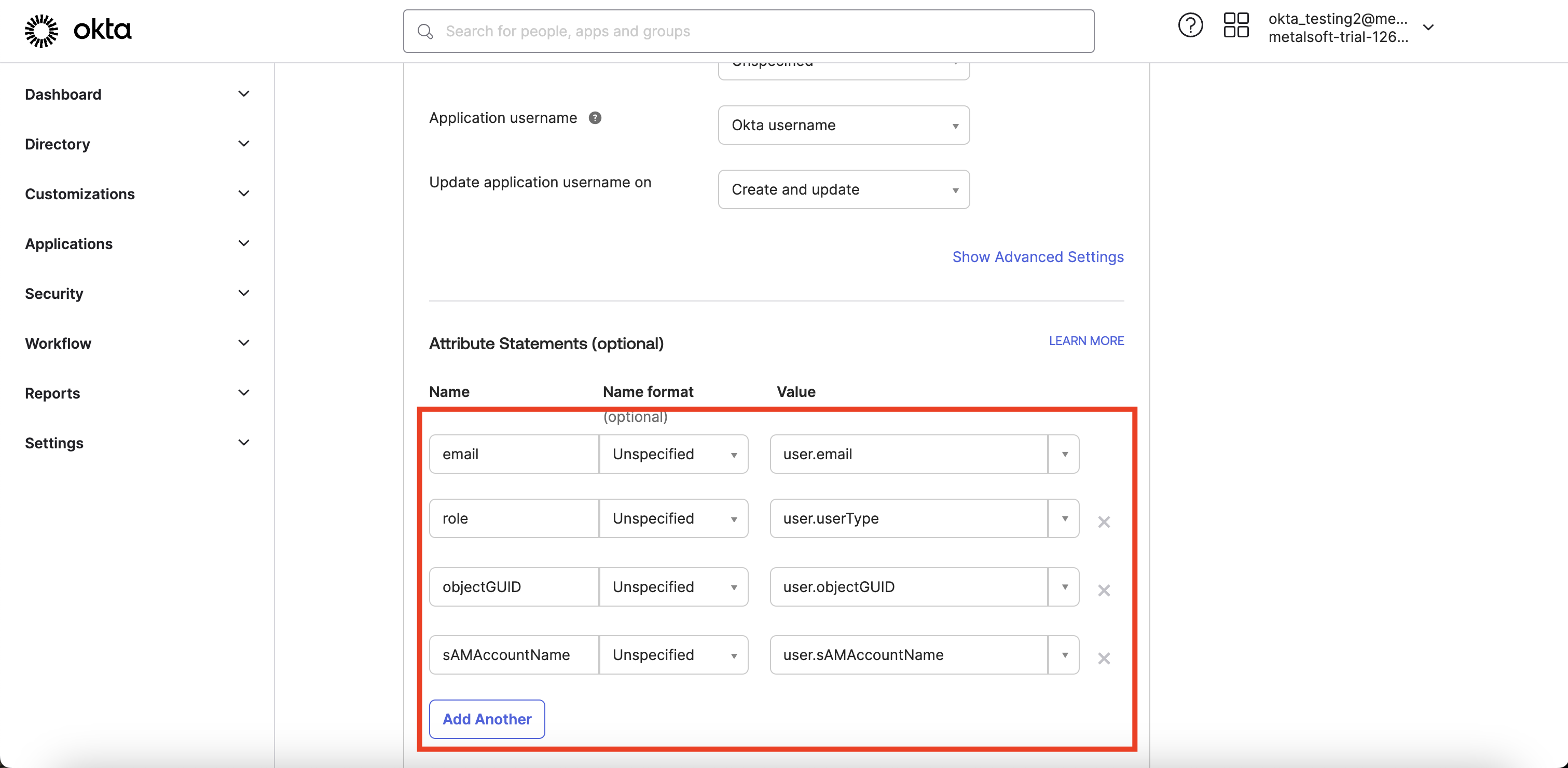objectGUID- This attribute should be a unique value associated with the user. In the given example, the custom attribute ‘user.objectGUID’ is used, but it can be mapped to any unique attribute associated with the user. -