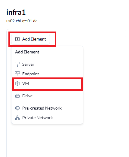 Section titled “Creating a VM Array”Working with virtual machines is very similar to working with bare metal. Click on Add Element click on VM