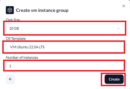 Select the Disk Size, the OS Template and Number of instances and click Create