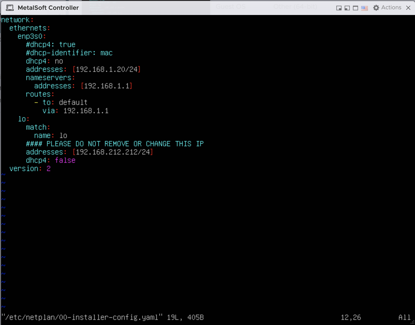 /etc/netplan/00-installer-config.yamlfile:- Set the GLOBAL CONTROLLER IP address in the