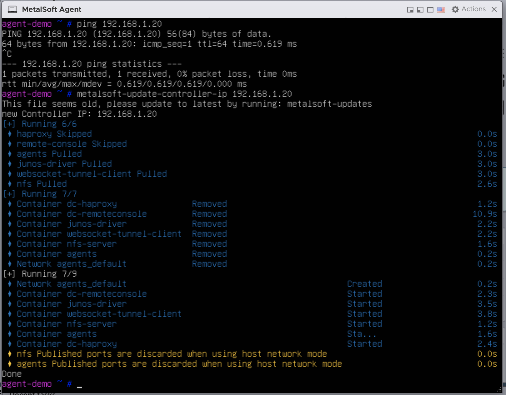 metalsoft-update-controller-ip 192.168.1.20 #note the Global Controller IP not the Site Controller ip