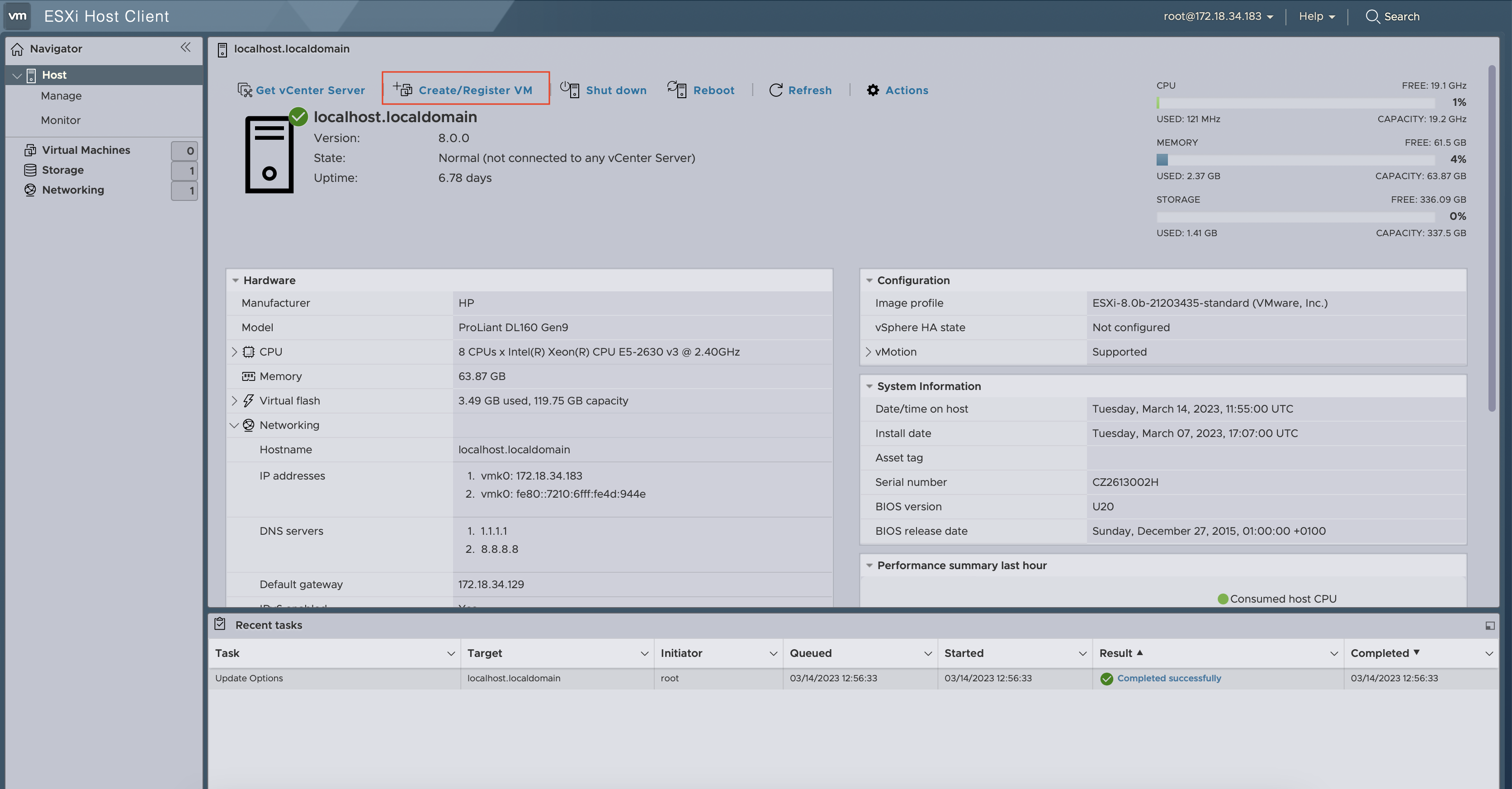 Section titled “1. Deploy the Global Controller Appliance VM in ESXi”- Use the Create VM button: