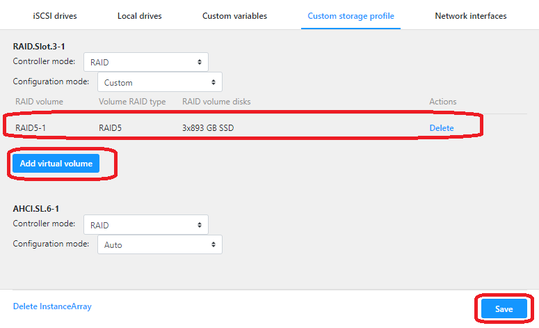 Note, you can only create a custom RAID on the initial deploy of the instance. If you wish to re-create a custom RAID, you will need to delete the instance, deploy, and re-create it.