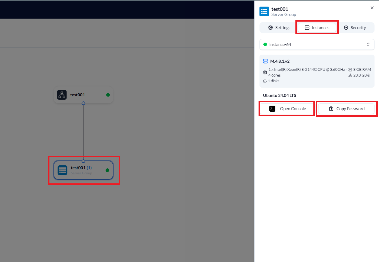Go to the Instances tab Click the access link or copy the url or IP. Use your platform’s SSH client to connect, use username (in this instance ubuntu) and use the Initial password Reveal or Copy to retrieve the password To test the remote console, go to the Instances tab Click the HTML console “Remote console” link This will open up a new tab to the remote console Use Initial password to log in (Above will go when I get the correct image)