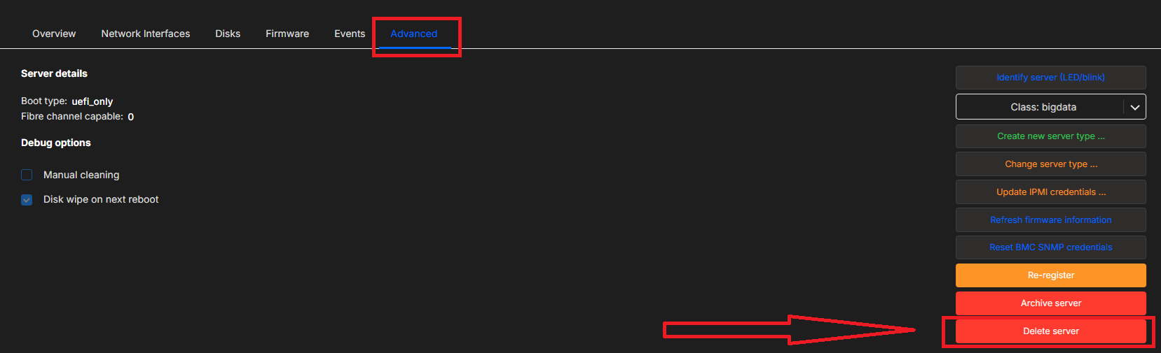 Section titled “Advanced Test 1 Validate secure decommission of a server resource”- Procedure