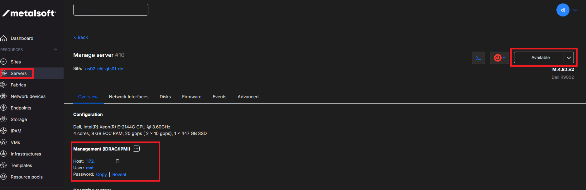 Navigate to servers > select a server, notice the available state (or if “cleaning” wait until cleaning is complete and server is in Available state) Use the iDRAC credentials to login into the iDRAC and try to boot the server.