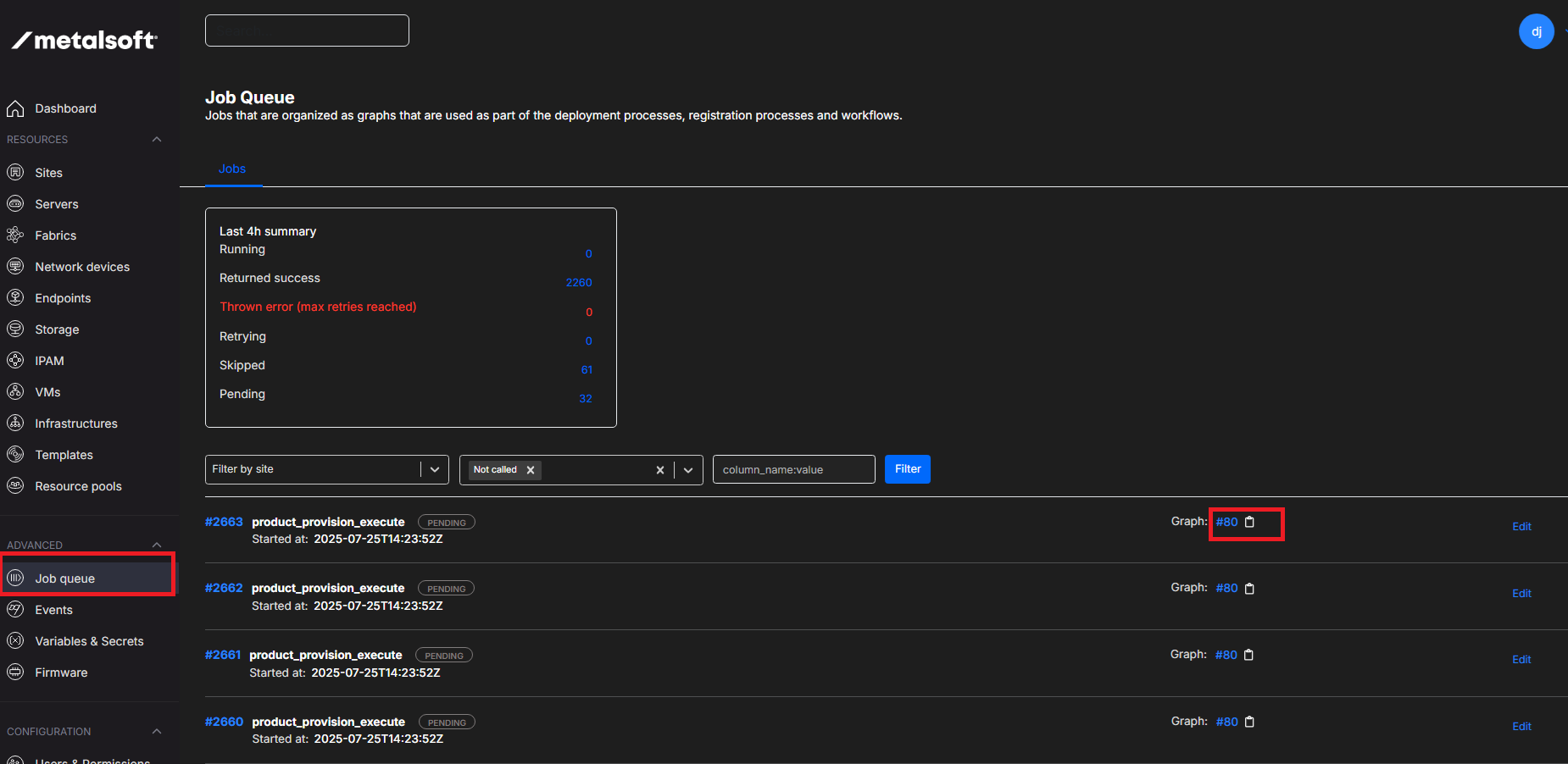 Section titled “Advanced Test 4 Review Job queue”- Procedure