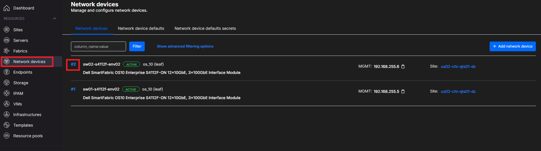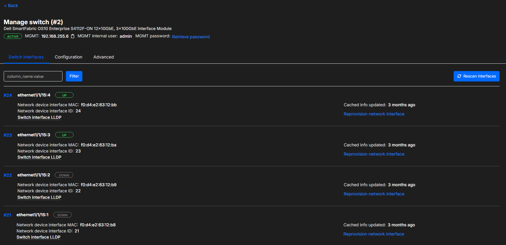 In the Admin UI, go to Network devices > Select a network device > Switch interfaces.