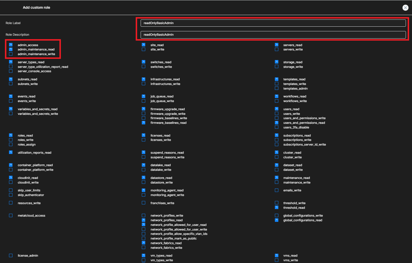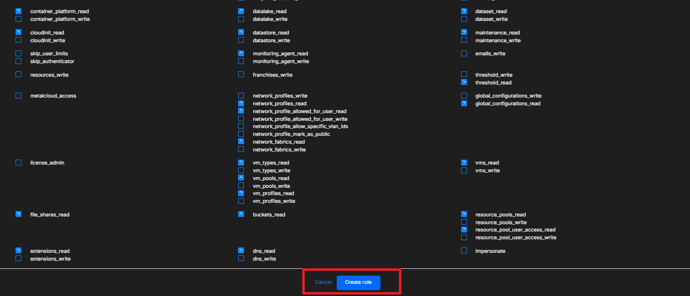 Add a name and a description to the custom role, select the desired permissions, click create role