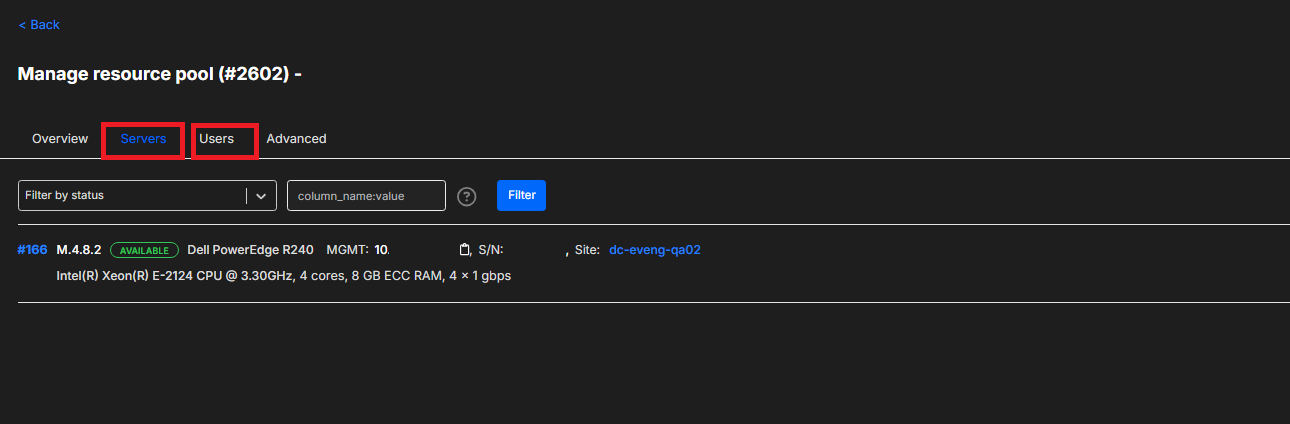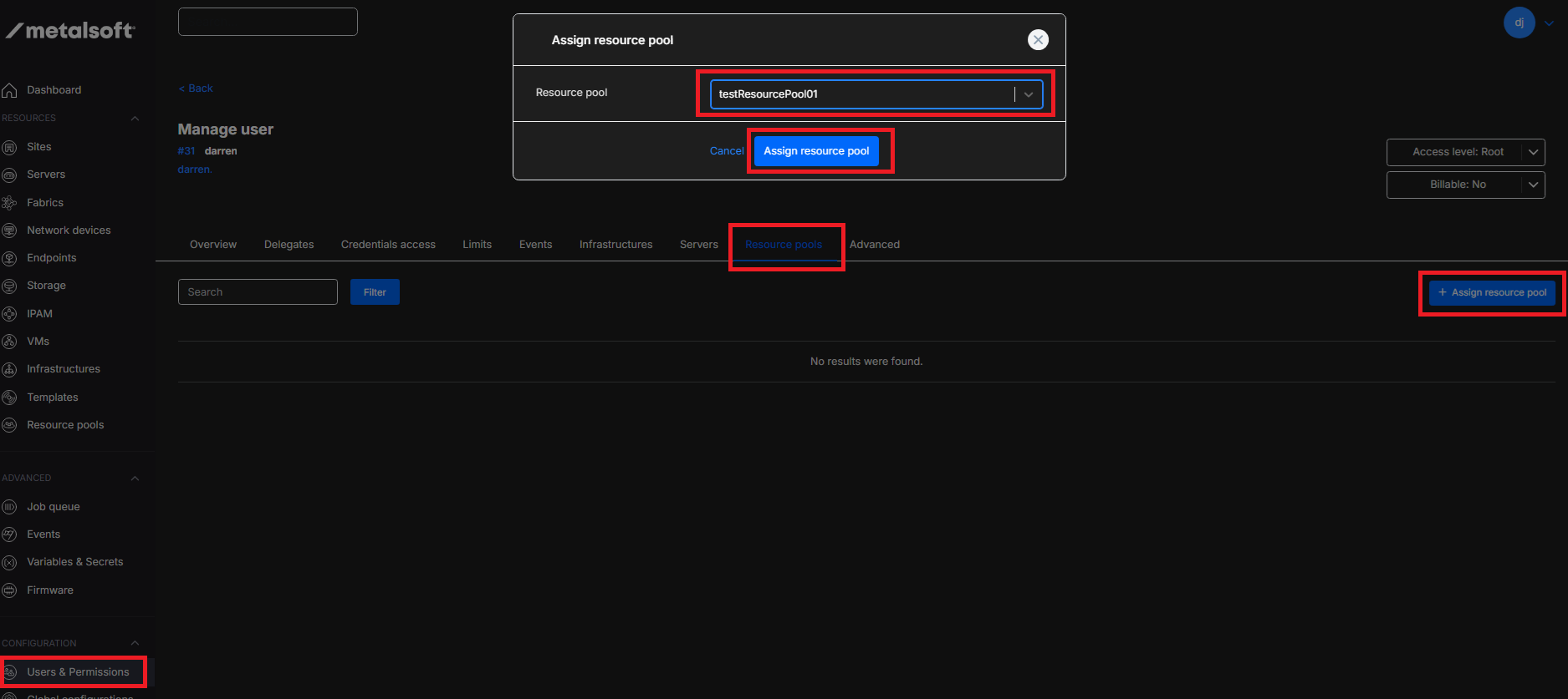 - Navigate back to Resource Pools and review Users and Servers assigned to the Resource pool