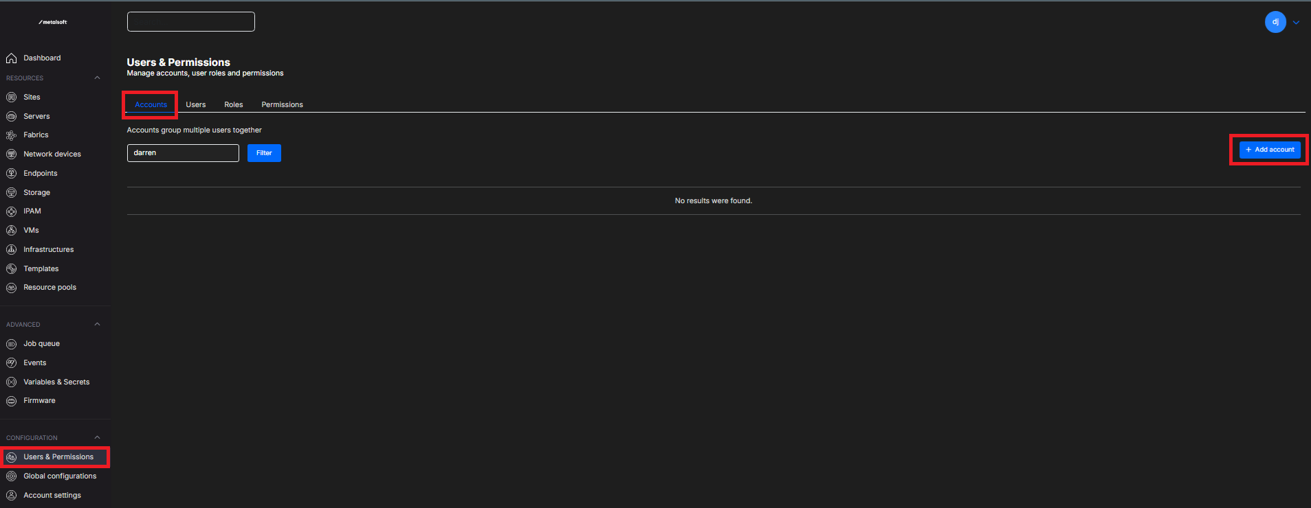 Navigate to Users & Permissions, click on Accounts/Add Account