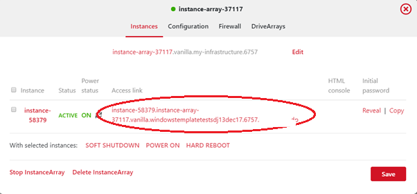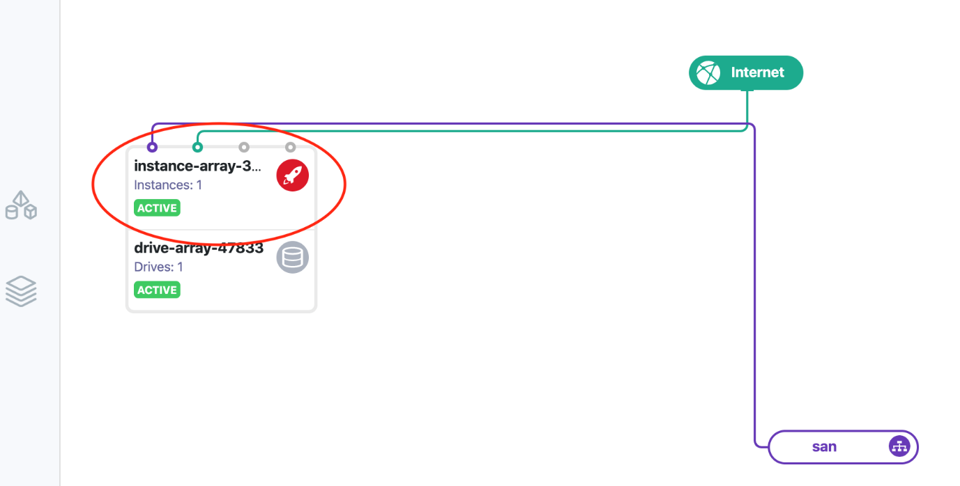 Section titled “Locating access credentials”1.In the MetalSoft Infrastructure Designer, click on the Instance Array widget of the instance you want to connect to.