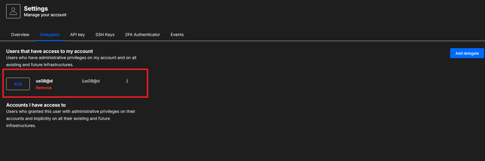 This article details how primary users (billable account owners) can grant other users administrative privileges over their infrastructures or revoke them.