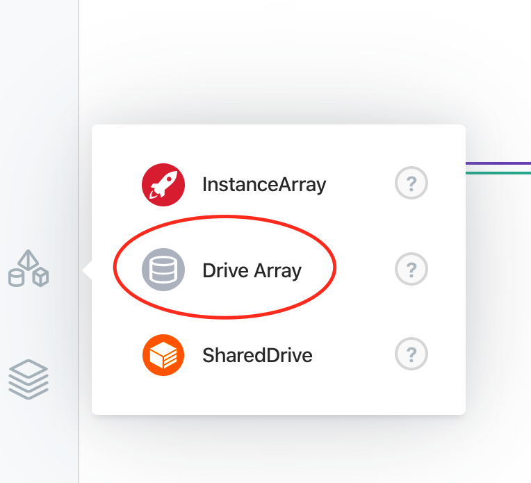 Section titled “Adding a new drive”1.In the Infrastructure Designer, click on the Infrastructure button on the left bar and select Drive Array.